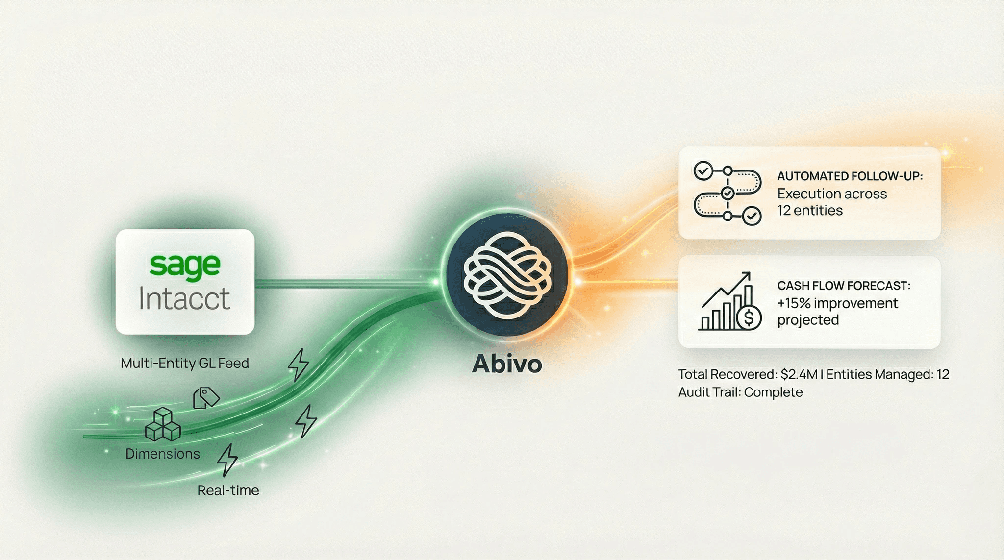 Controller-Approved Workflows We don't change your GL or accounting workflows. Your team keeps working in Sage; Abivo runs in the background as a supportive engine.