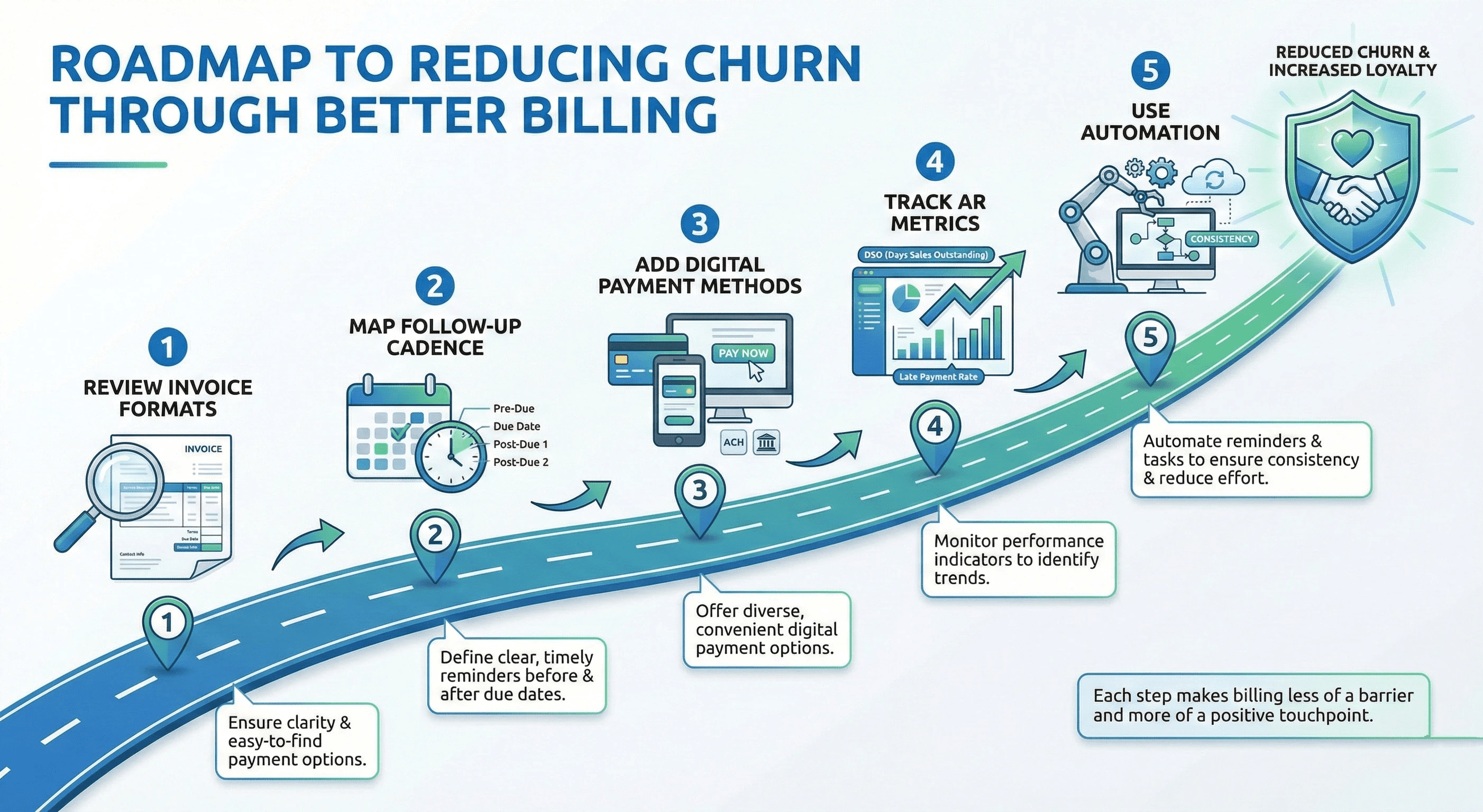 Improving customer loyalty through better AR doesn’t happen overnight. Here’s a simple road map: