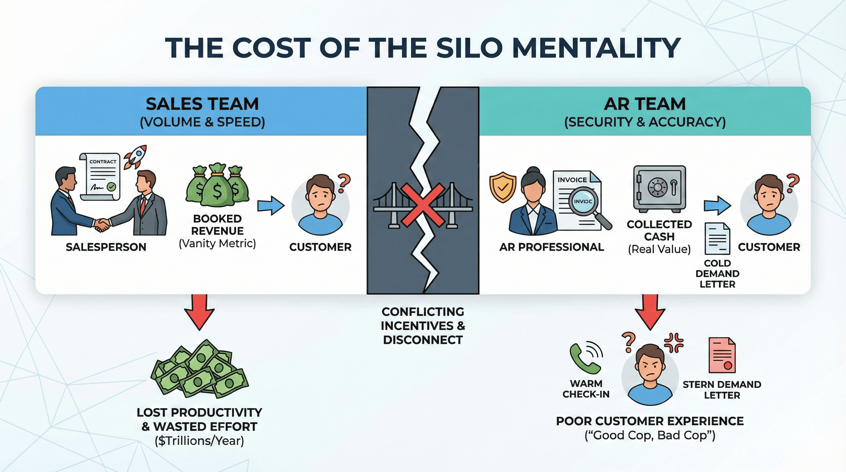 In many businesses, there is a distinct line drawn in the sand. On one side stands the sales team, focused on revenue growth, closing deals, and hitting quotas. On the other side is the accounts receivable (AR) team, focused on risk mitigation, cash flow, and collecting payments. While both teams ultimately want the company to succeed, their methods often put them at odds.