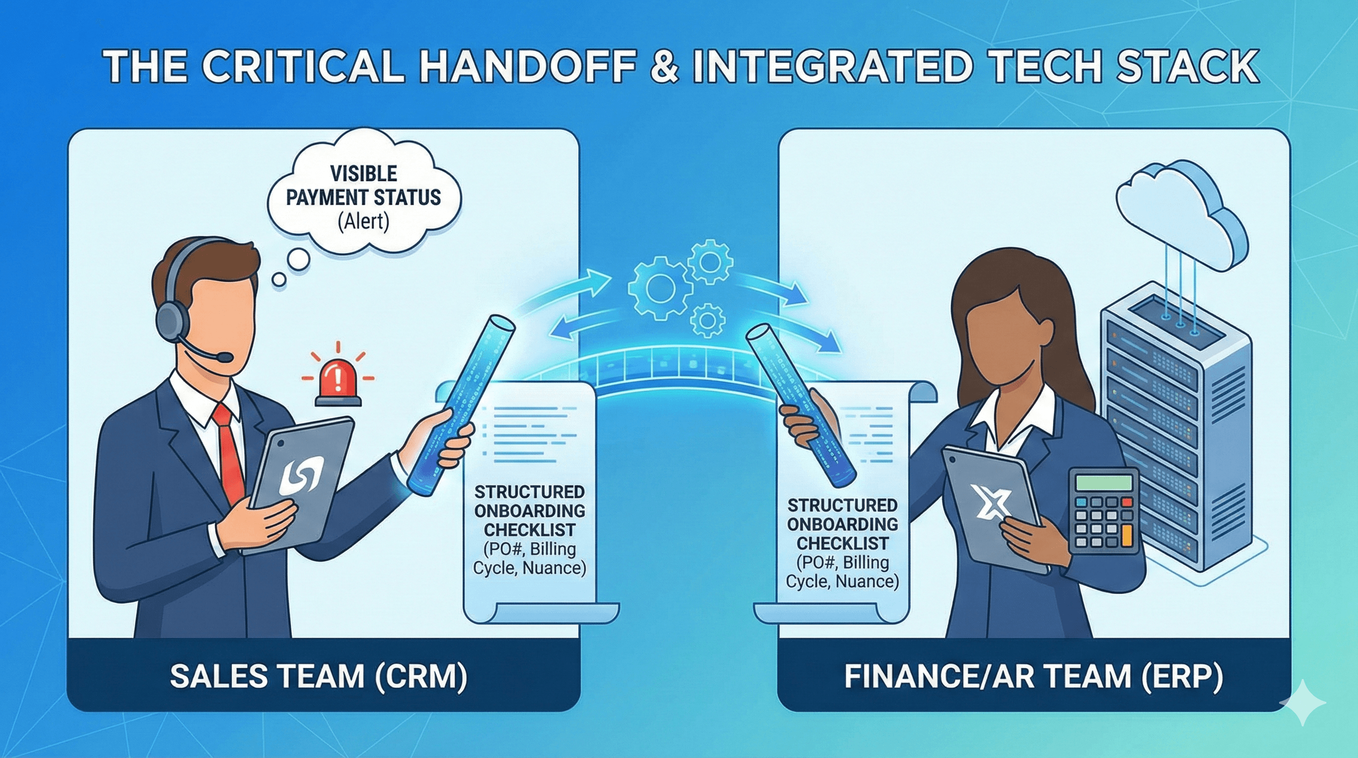 The "throw it over the fence" mentality, where sales hands off a new client to finance without context, is a primary driver of high Days Sales Outstanding (DSO) and cash flow volatility.