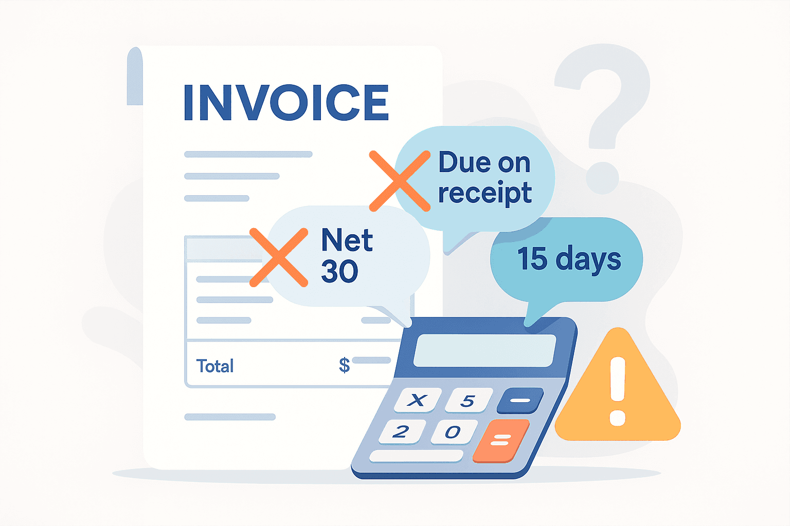 Many invoices bury terms in fine print or rely on shorthand such as “Net 30” with no due date or clear instructions. That looks simple, but it creates friction for accounts payable teams that have to decide when and how to schedule payment.