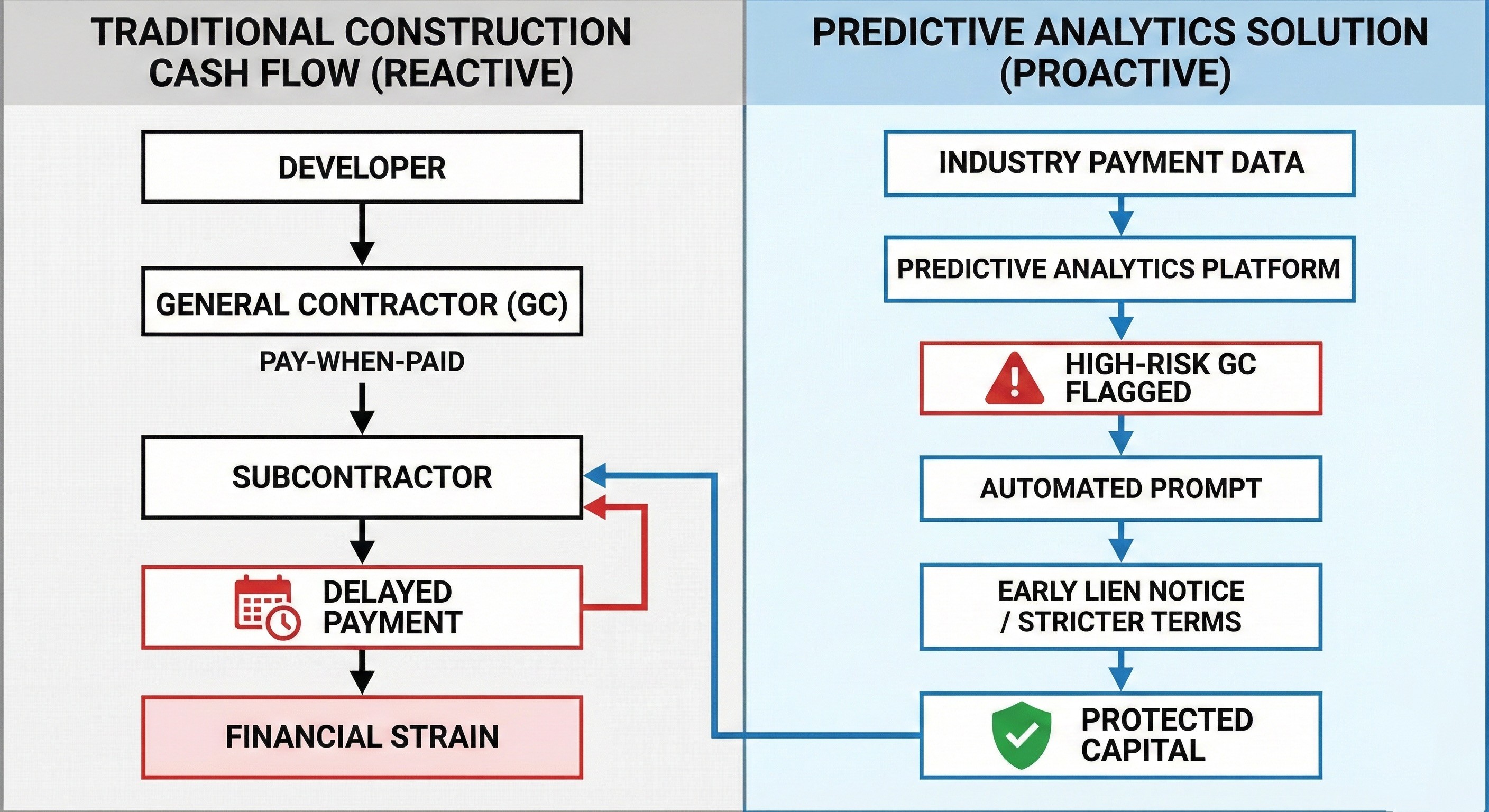 The Challenge: A general contractor might delay payment because they haven't been paid by the developer, causing a ripple effect down to subcontractors.