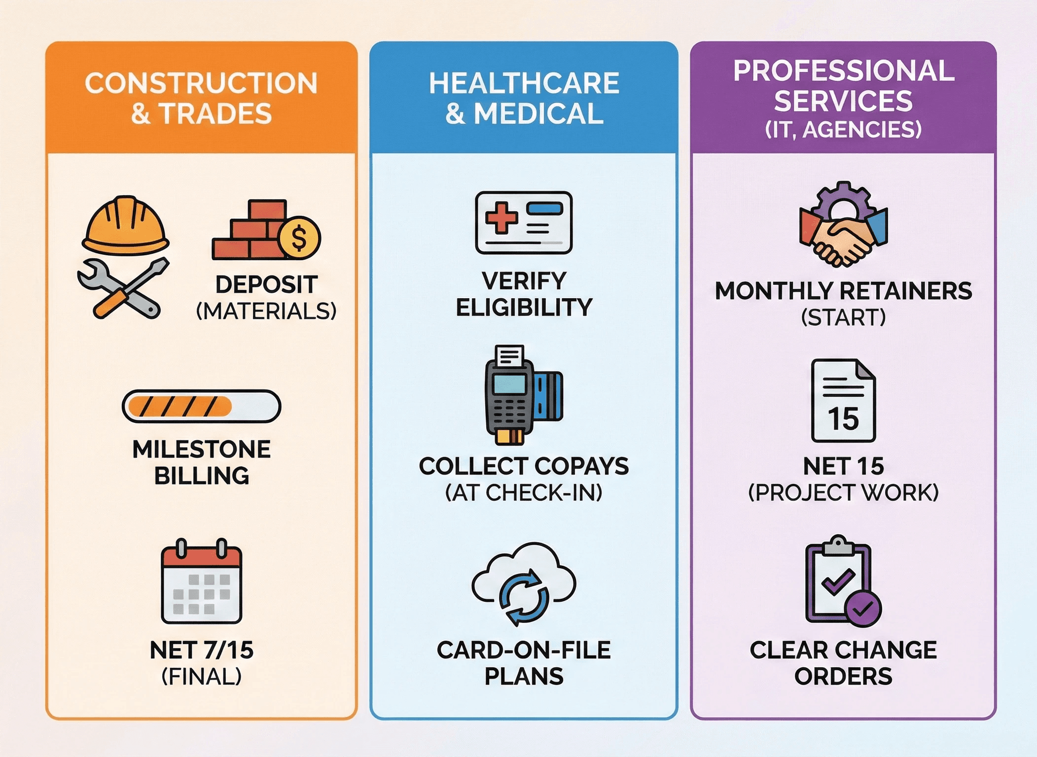A single credit policy rarely fits every service vertical. The economics in construction, healthcare, and professional services are different, so payment structures should be different too.